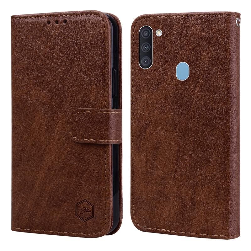 Θήκη κινητού τηλεφώνου Samsung Galaxy A11 με υφή δέρματος λάδι και υλικό PU + TPU (Μαύρο)