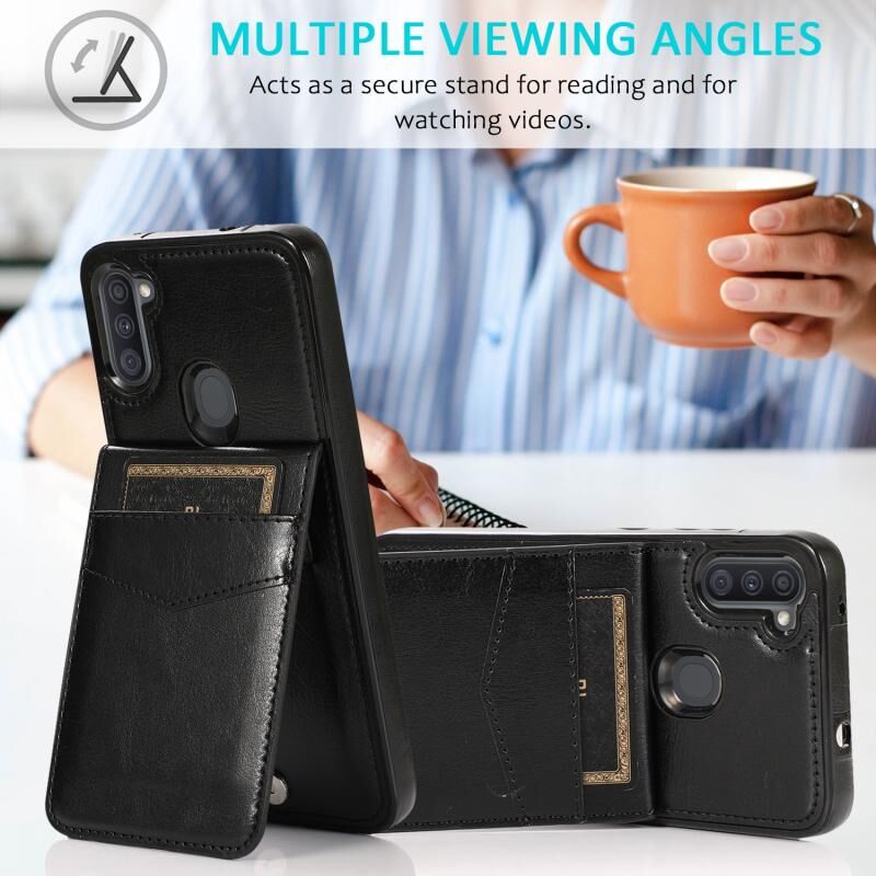 Για Samsung Galaxy A11 Αμιγές χρώμα PC + TPU προστατευτική θήκη με θήκη & υποδοχές για κάρτες (Μαύρο)