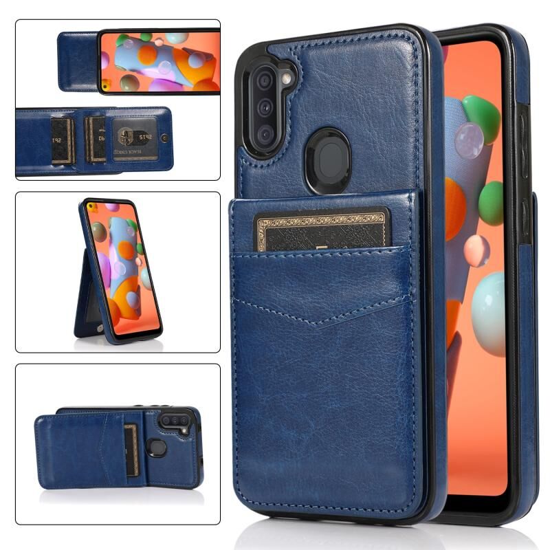 Για Samsung Galaxy A11 Αμιγές χρώμα PC + TPU προστατευτική θήκη με θήκη & υποδοχές για κάρτες (Μπλε)