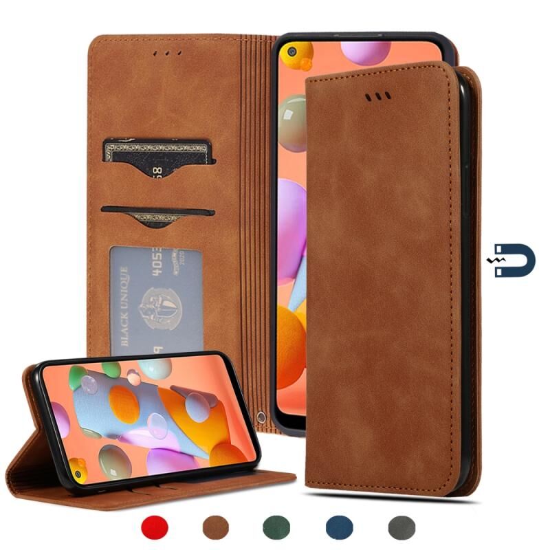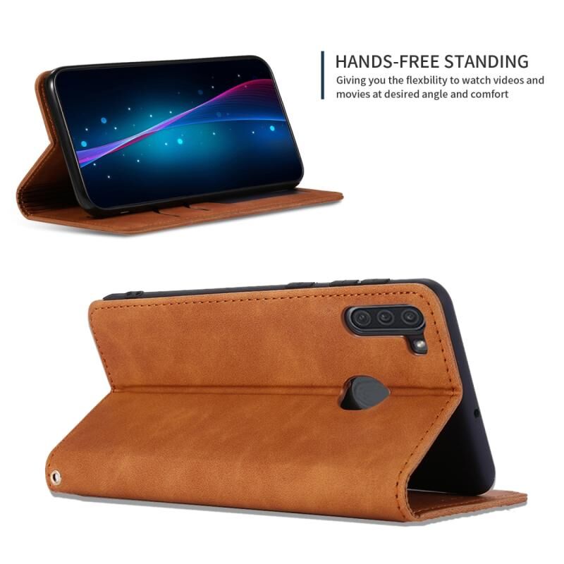 Για το Samsung Galaxy A11 (US) Ρετρό δέρμα αισθάνομαι επιχείρηση μαγνητική οριζόντια Flip δερμάτινη θήκη (καφέ)