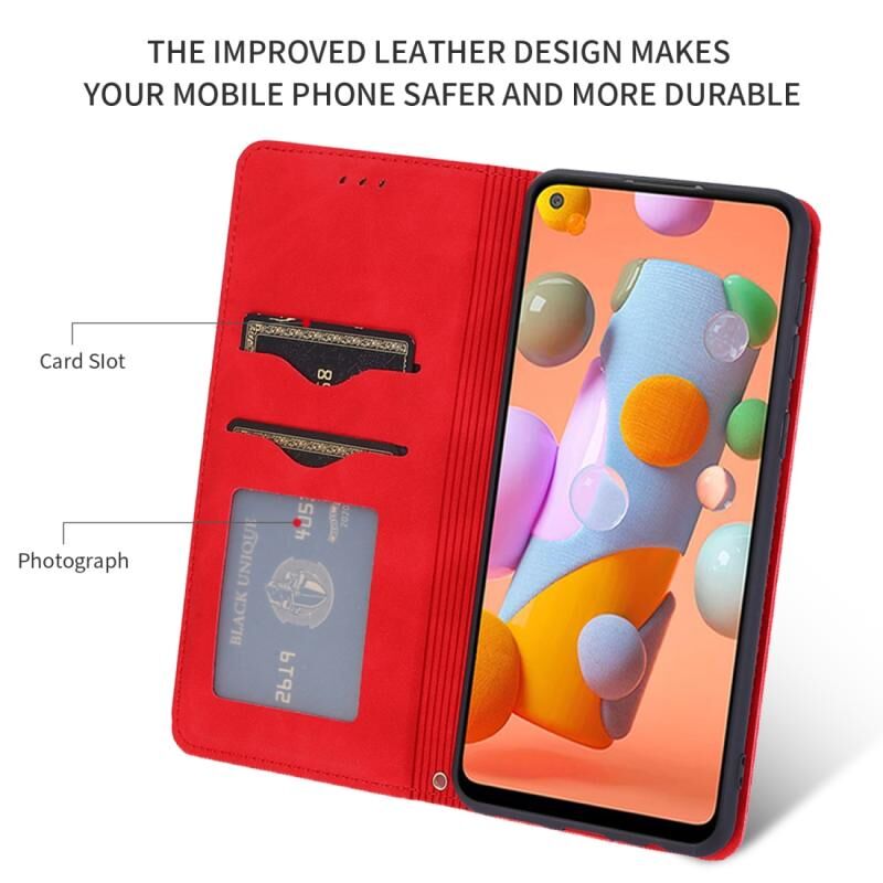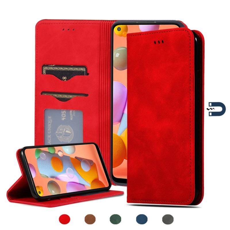Για το Samsung Galaxy A11 (US) Ρετρό δέρμα αισθάνομαι επιχείρηση μαγνητική οριζόντια Flip δερμάτινη θήκη (κόκκινο)