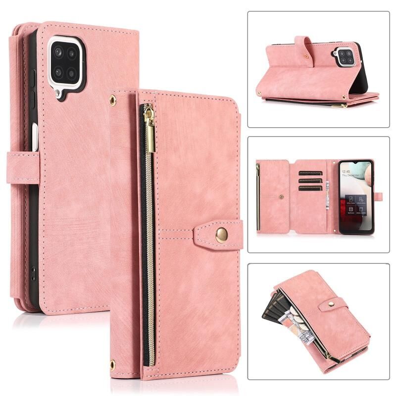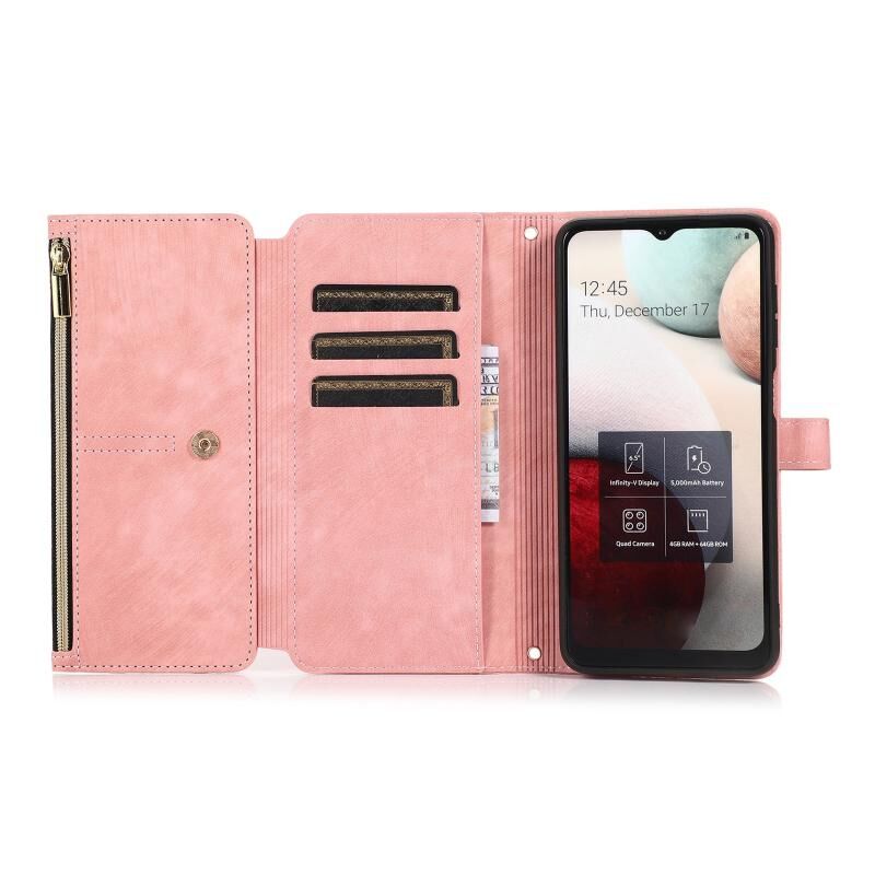 Για το Samsung Galaxy A12 4G / 5G Dream 9-Card πορτοφόλι φερμουάρ τσάντα δερμάτινη θήκη τηλεφώνου (ροζ)