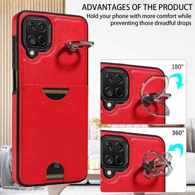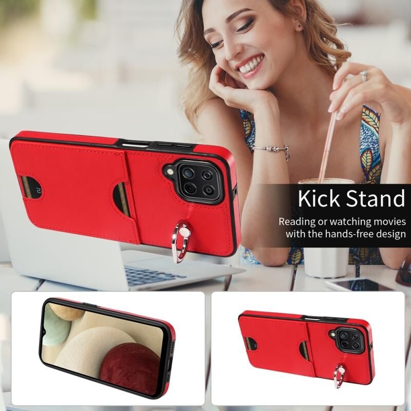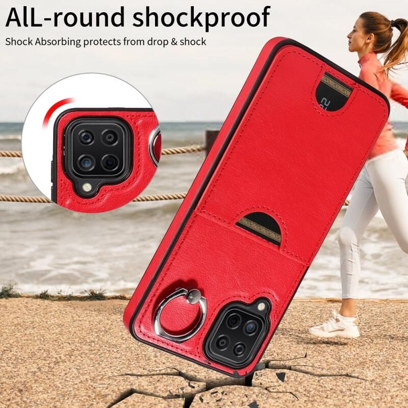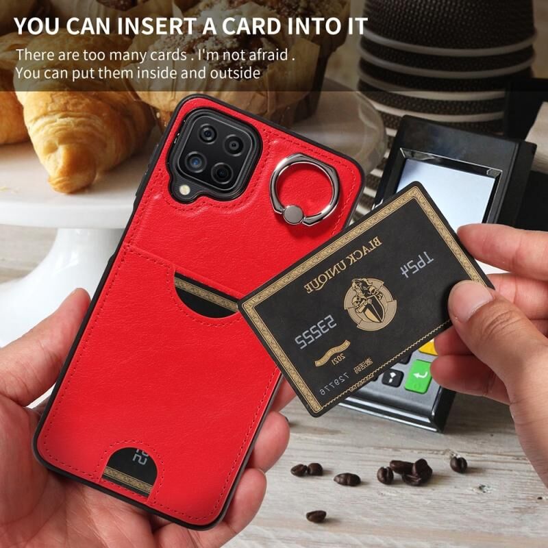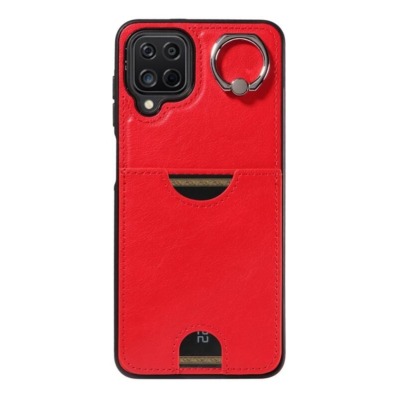 Για Samsung Galaxy A12 4G Calf Υφή κάρτα Slot δαχτυλίδι κάτοχος θήκη τηλεφώνου (Κόκκινο)