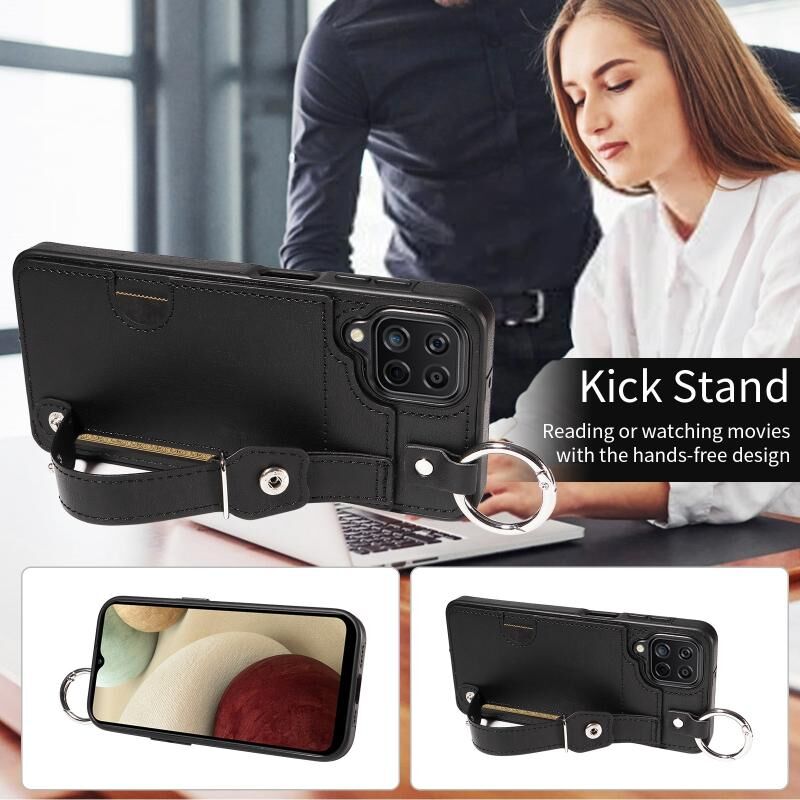 Για Samsung Galaxy A12 4G Calf υφή καρπού κάρτα Slot Ring υπόθεση τηλεφώνου (μαύρο)