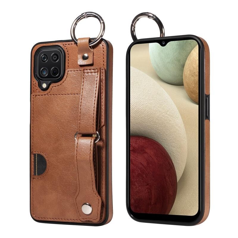 Για Samsung Galaxy A12 4G Calf υφή καρπού κάρτα Slot Ring υπόθεση τηλεφώνου (καφέ)