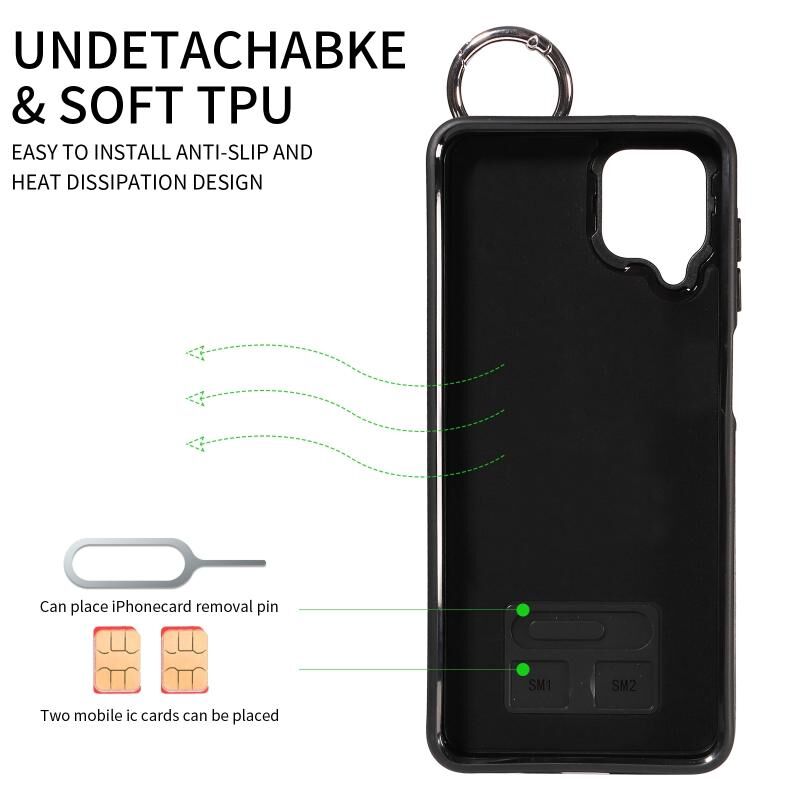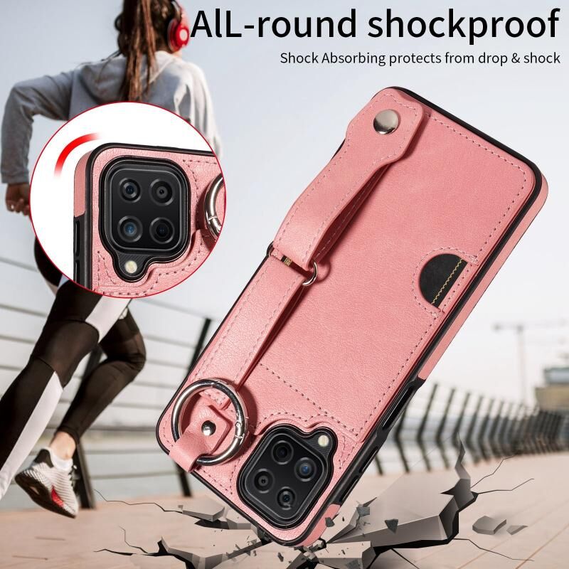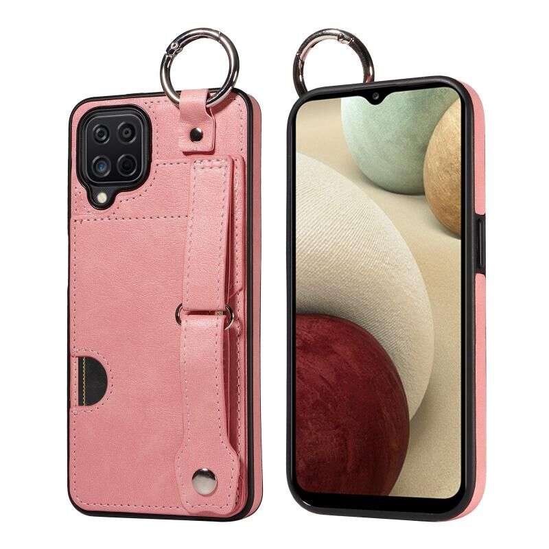 Για Samsung Galaxy A12 4G Calf υφή καρπού κάρτα Slot δαχτυλίδι υπόθεση τηλεφώνου (ροζ)