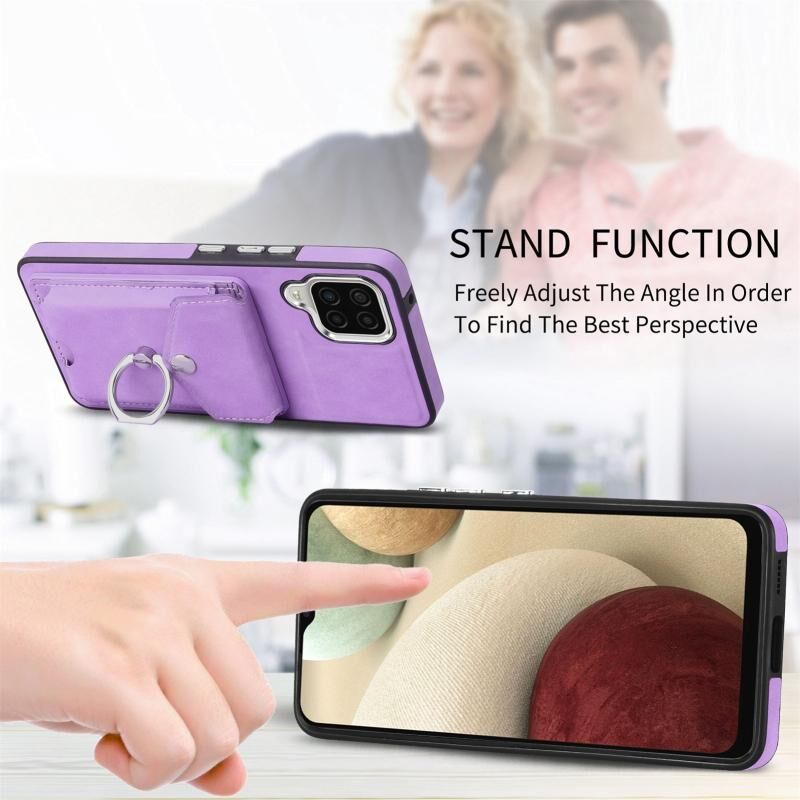 Για Samsung Galaxy A12 4G Electroplating Skin-feel δέρμα δαχτυλίδι κάρτα πορτοφόλι υπόθεση τηλεφώνου (Μωβ)