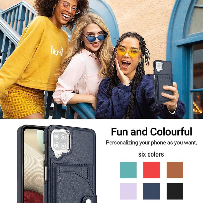 Θήκη κινητού τηλεφώνου από δέρμα ανθεκτική στις κρούσεις για Samsung Galaxy A12 4G / M12 με θήκη για κάρτες (Μπλε)