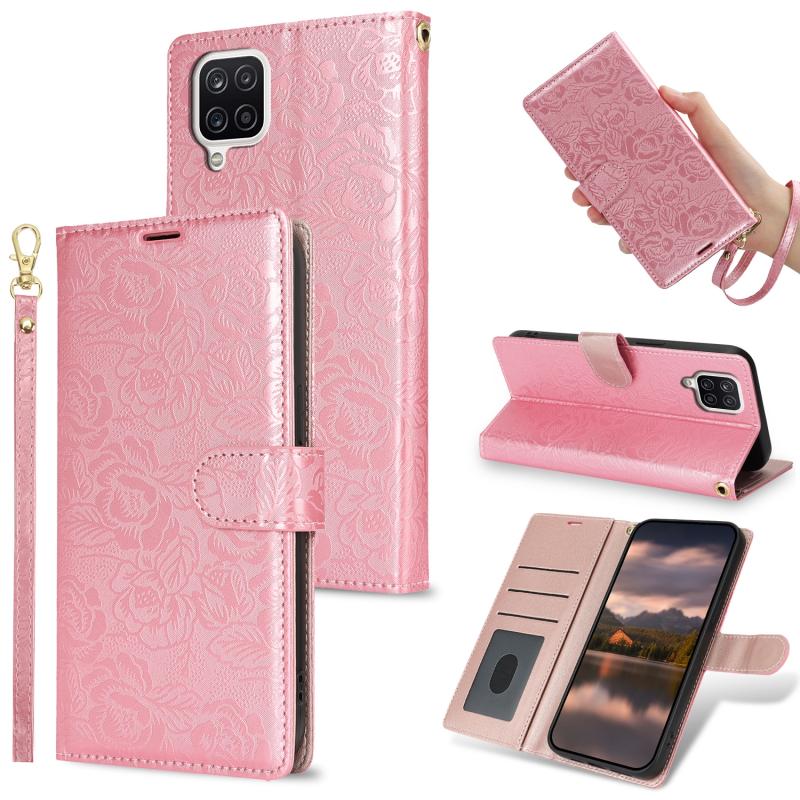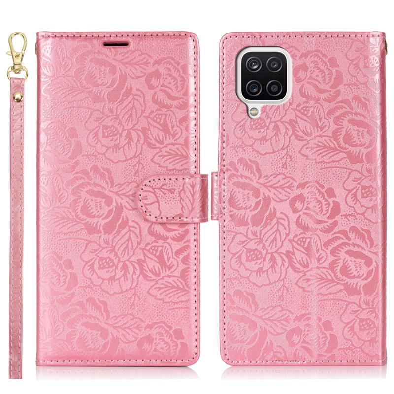 For Samsung Galaxy A12 4G Peony Flowers Imprint Leather Phone Case(Pink)