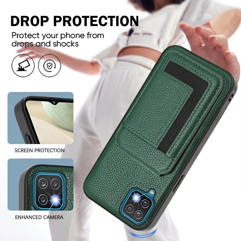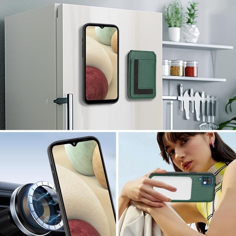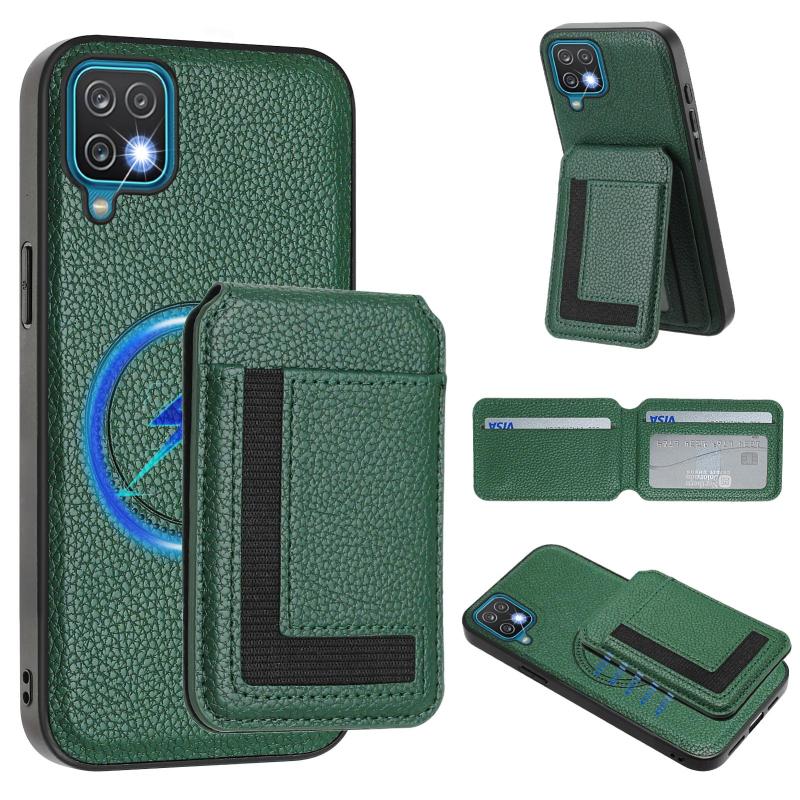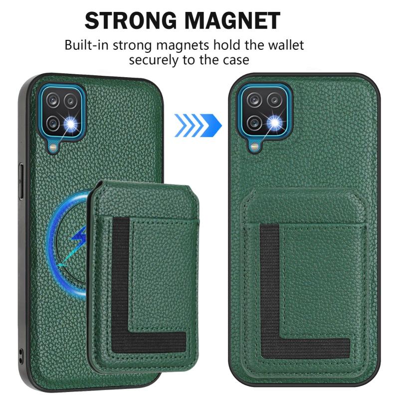 Θήκη τηλεφώνου με αποσπώμενη μαγνητική τσέπη καρτών MagSafe για Samsung Galaxy A12 5G / 4G CX01 (Πράσινο παγωνιού)