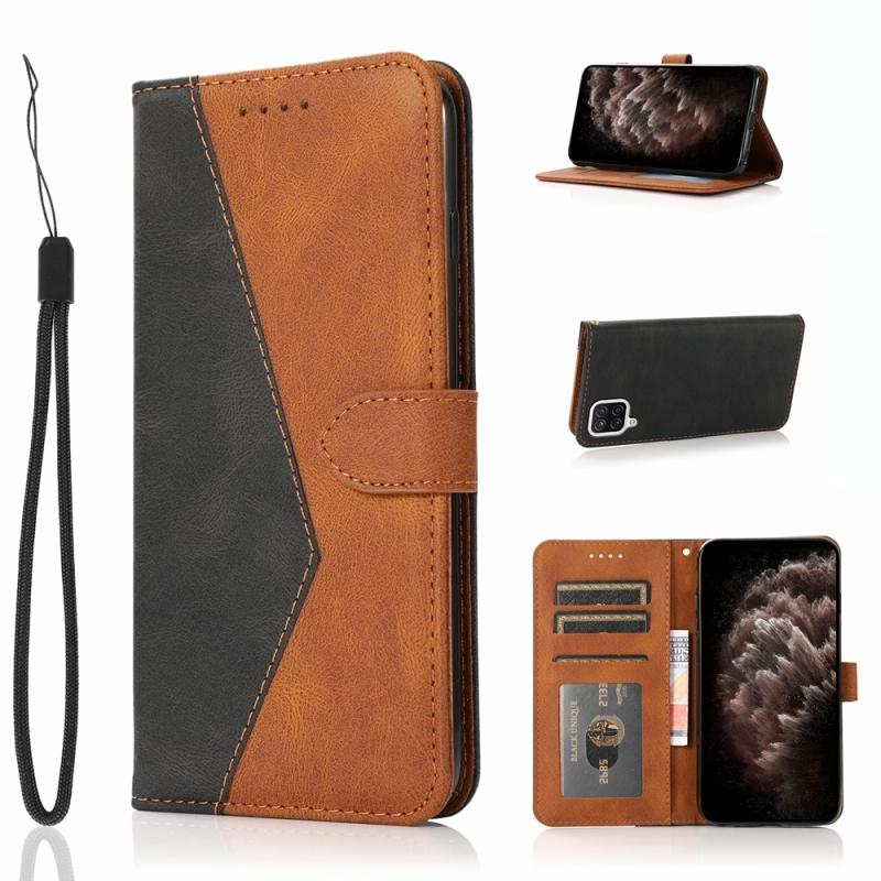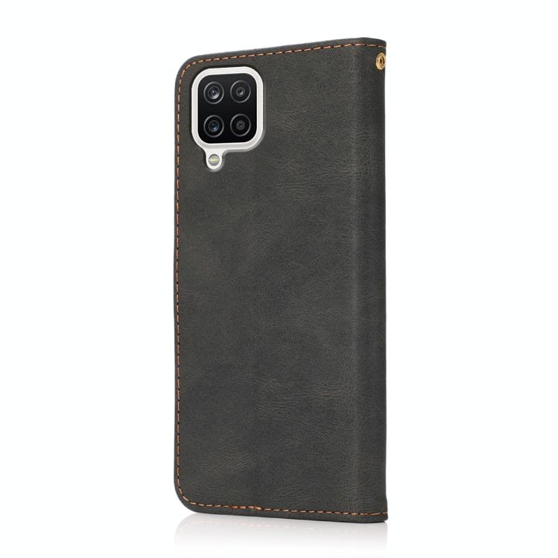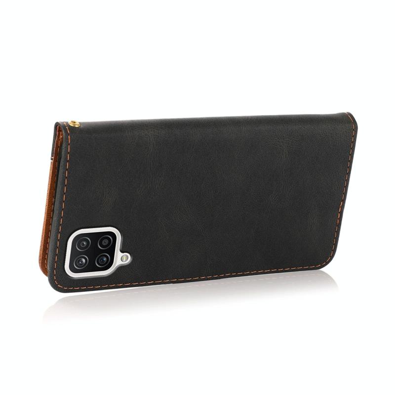 Θήκη τηλεφώνου από δέρμα με διπλή ραφή για Samsung Galaxy A12 5G/4G / M12 (Μαύρο-Ροζ Χρυσό)