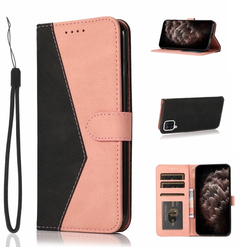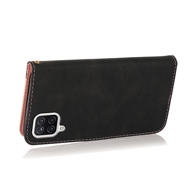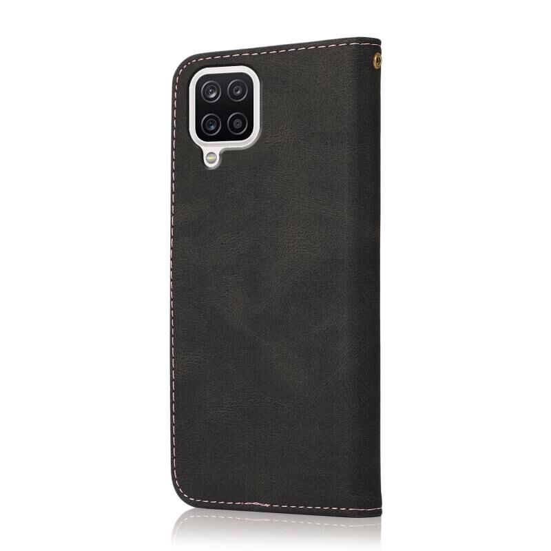 Θήκη τηλεφώνου από δέρμα με διπλή ραφή για Samsung Galaxy A12 5G/4G / M12 (Μαύρο-Ροζ Χρυσό)