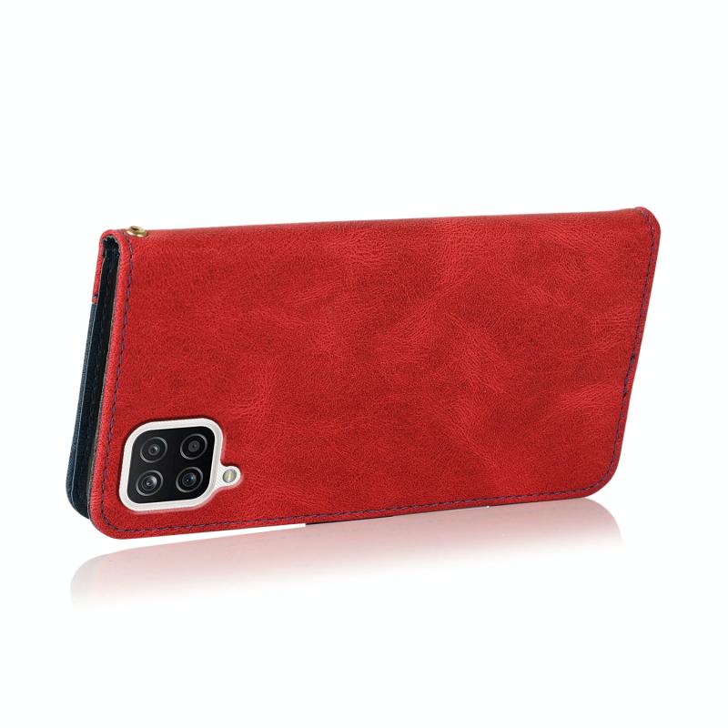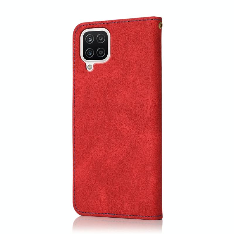 Θήκη τηλεφώνου από δέρμα με διπλή ραφή για Samsung Galaxy A12 5G/4G / M12 (Μαύρο-Ροζ Χρυσό)