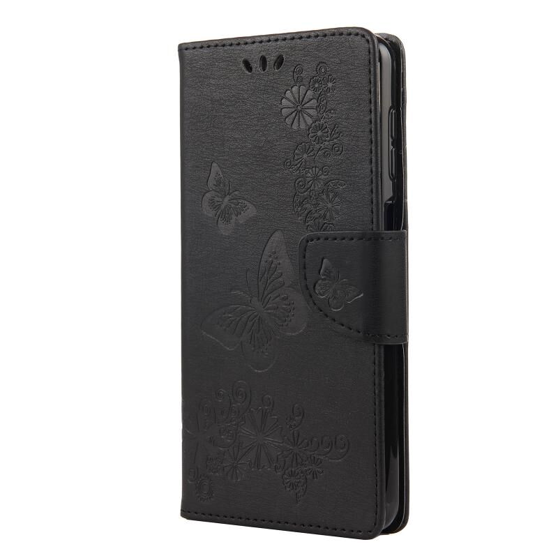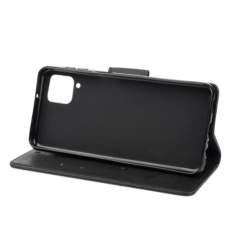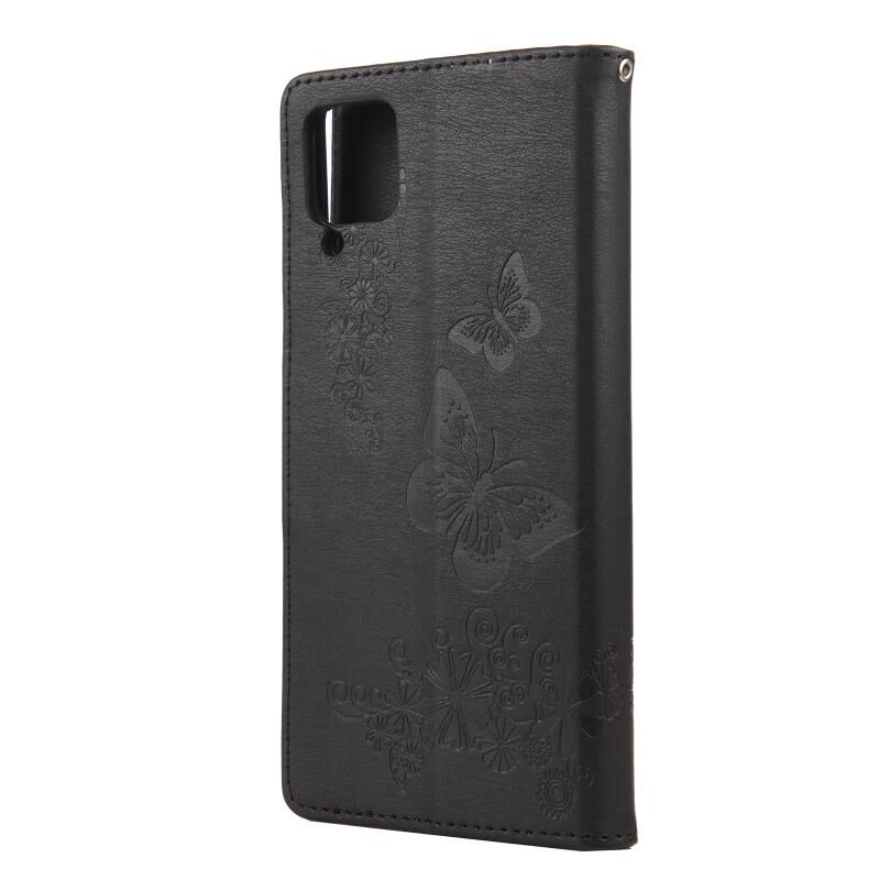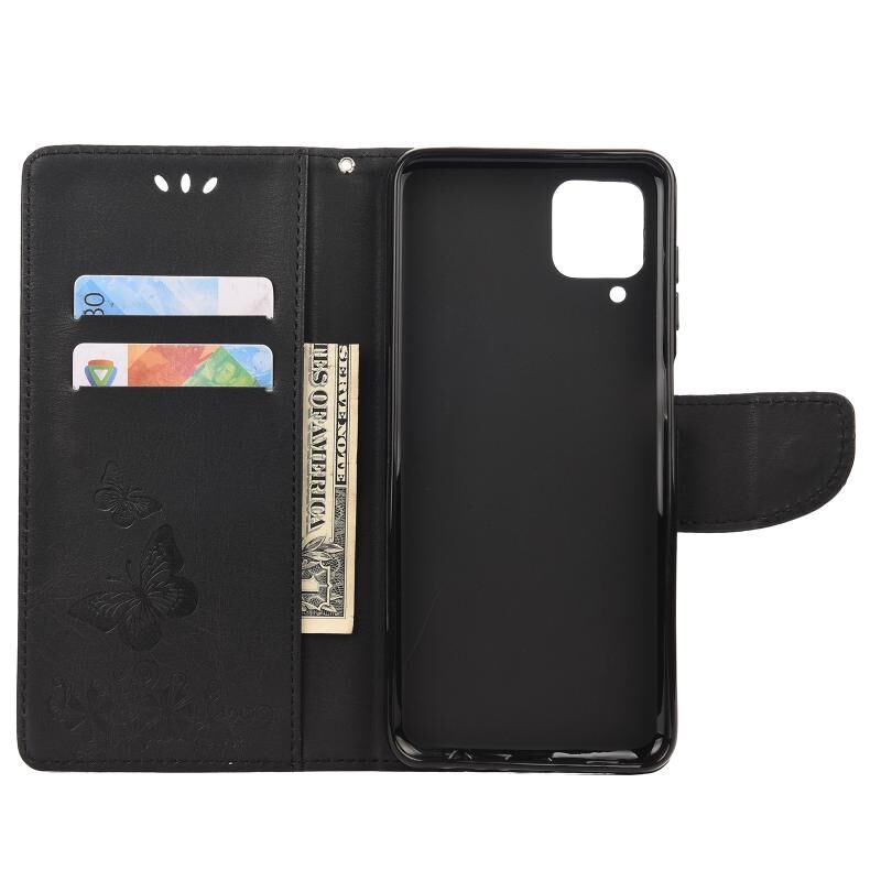 Για Samsung Galaxy A12 5G πεταλούδες ανάγλυφη οριζόντια Flip δερμάτινη θήκη με θήκη & υποδοχές για κάρτες & πορτοφόλι (Μαύρο)