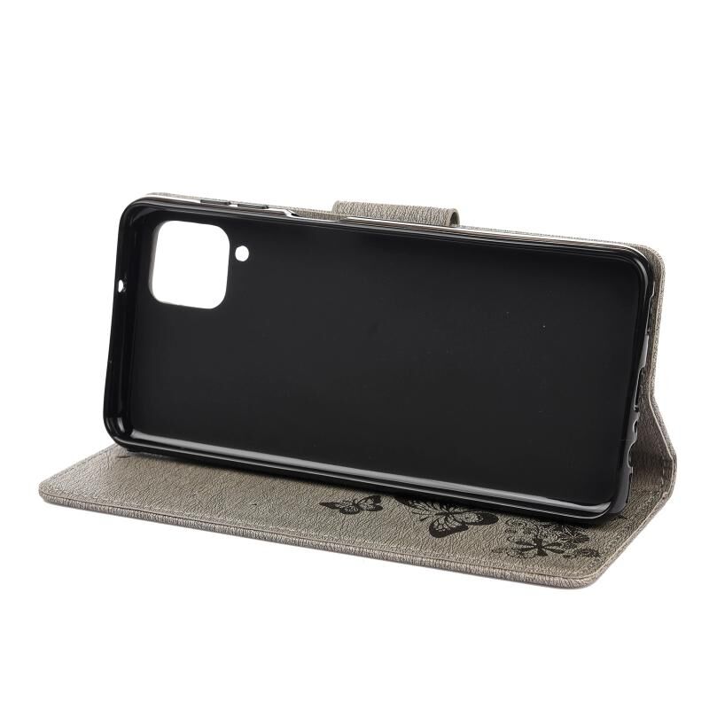 Για Samsung Galaxy A12 5G πεταλούδες ανάγλυφη οριζόντια Flip δερμάτινη θήκη με θήκη & υποδοχές για κάρτες & πορτοφόλι (γκρι)