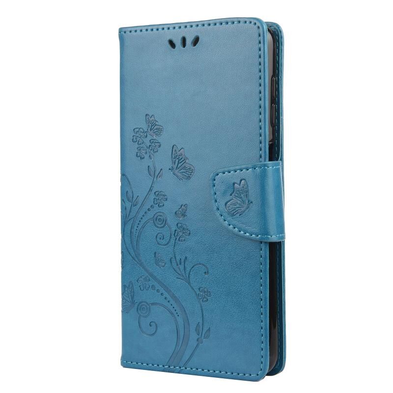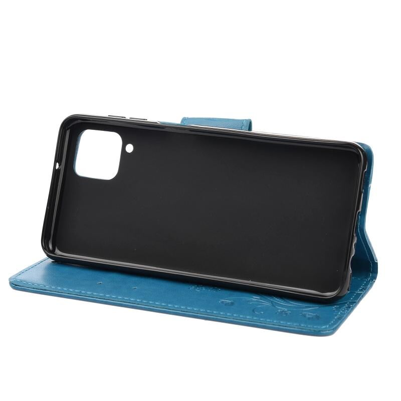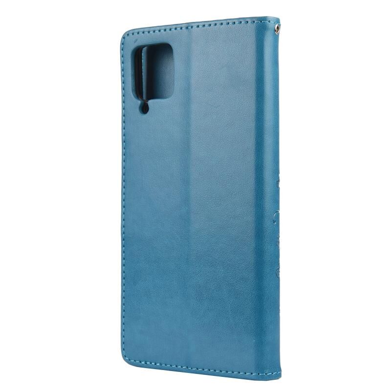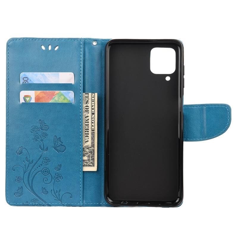Για Samsung Galaxy A12 5G πεταλούδα λουλούδι μοτίβο οριζόντια Flip δερμάτινη θήκη με κάτοχο & υποδοχές για κάρτες & πορτοφόλι (Μπλε)