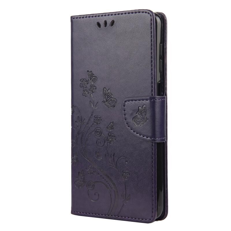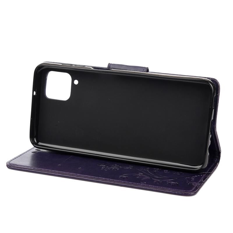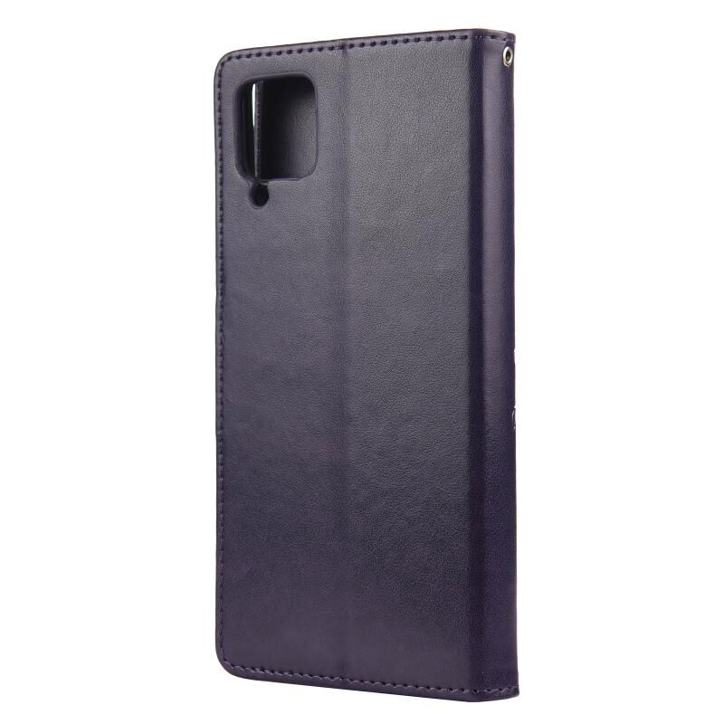 Για Samsung Galaxy A12 5G πεταλούδα λουλούδι μοτίβο οριζόντια Flip δερμάτινη θήκη με κάτοχο & υποδοχές για κάρτες & πορτοφόλι (Deep Purple)