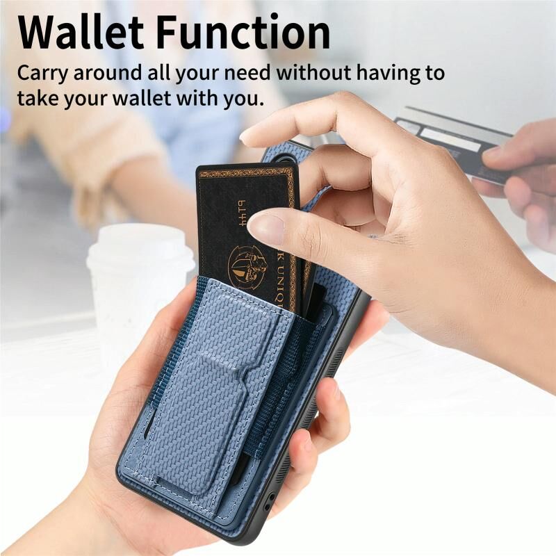 For Samsung Galaxy A12 5G Carbon Fiber Fold Stand Elastic Card Bag Phone Case(Blue)