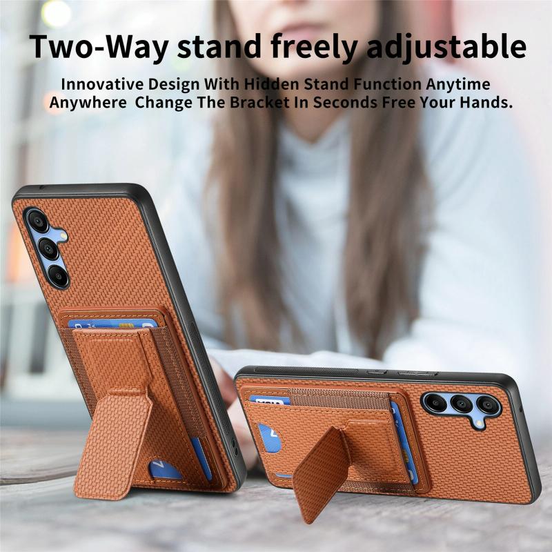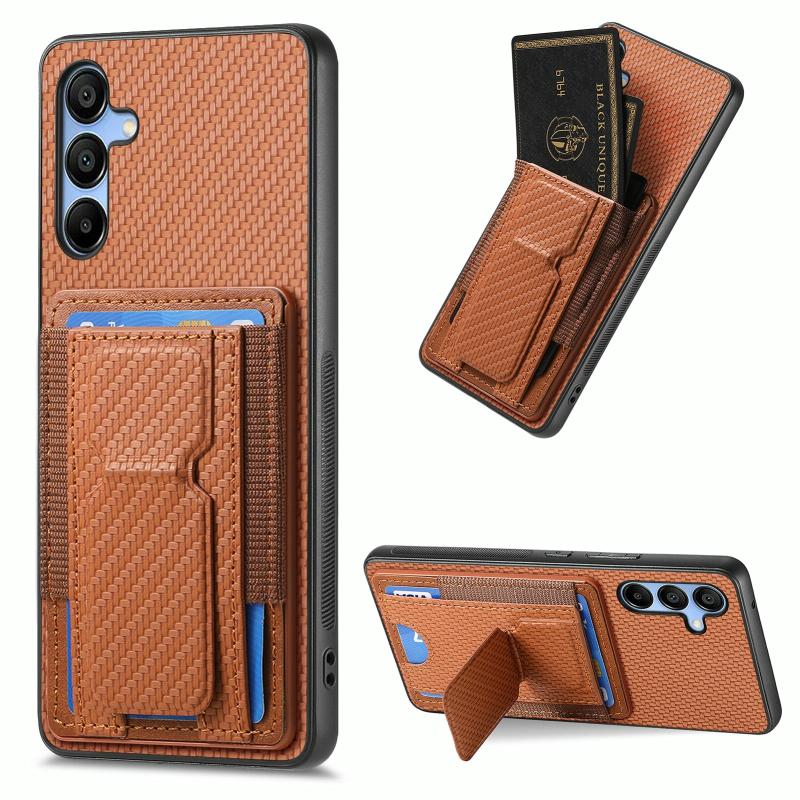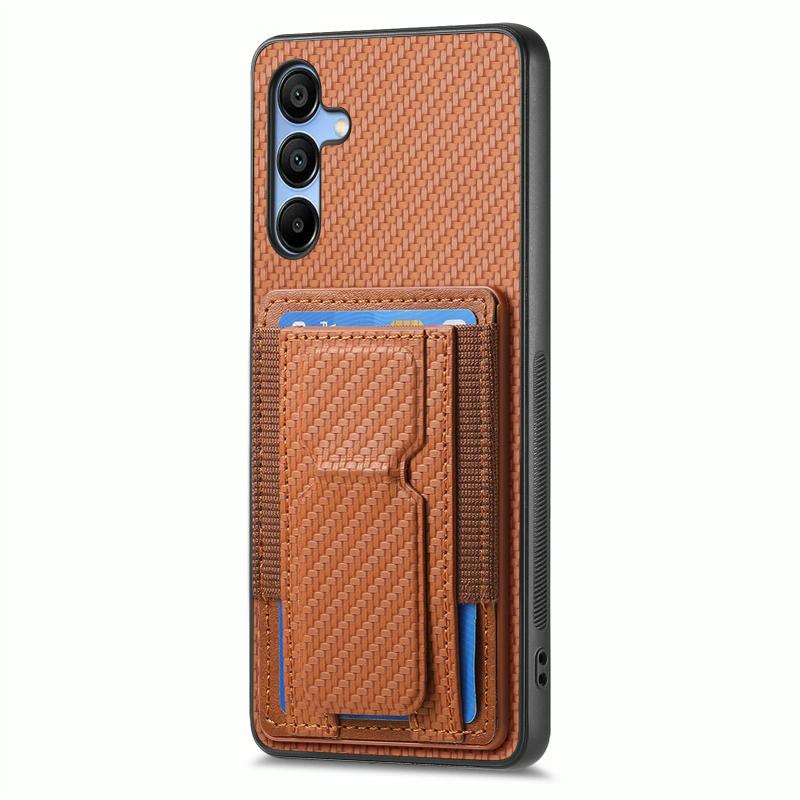 For Samsung Galaxy A12 5G Carbon Fiber Fold Stand Elastic Card Bag Phone Case(Brown)