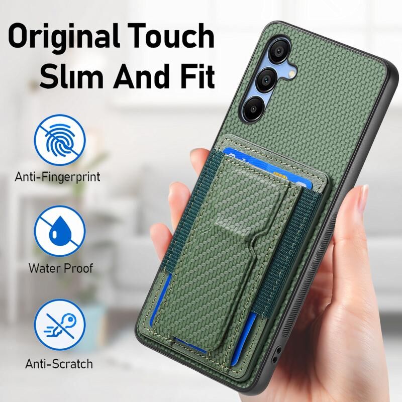 For Samsung Galaxy A12 5G Carbon Fiber Fold Stand Elastic Card Bag Phone Case(Green)