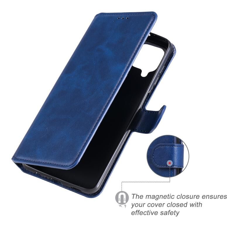 Για Samsung Galaxy A12 5G Κλασική θήκη από δέρμα μοσχαριού PU + TPU με οριζόντια αναδίπλωση, με θήκη για κάρτες & υποδοχές & πορτοφόλι (Μπλε)