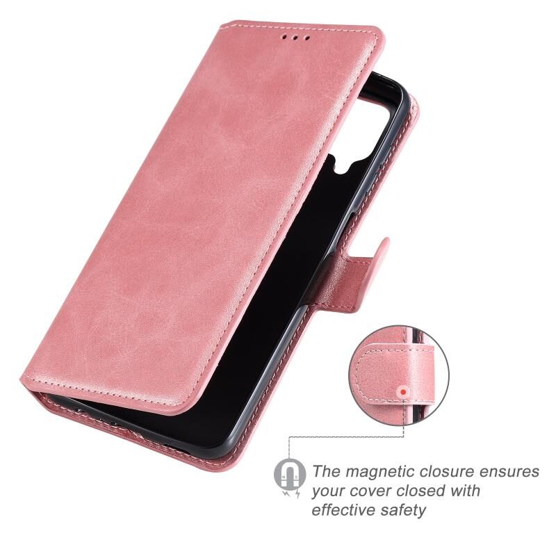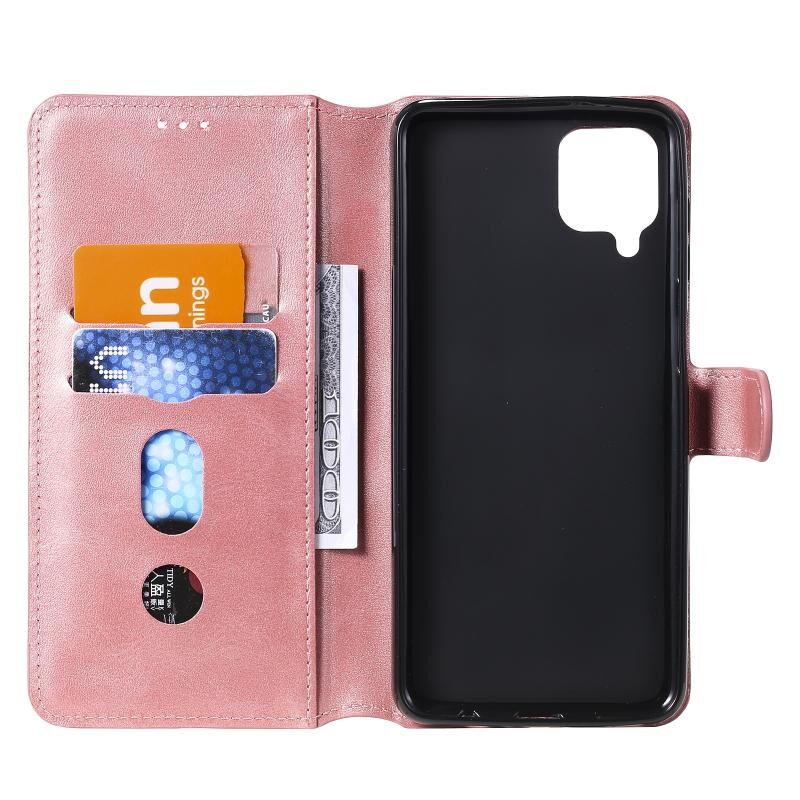 Για Samsung Galaxy A12 5G Κλασική θήκη από δέρμα μοσχαριού PU + TPU οριζόντια Flip, με θήκη για κάρτες και υποδοχές & πορτοφόλι (Ροζ χρυσός)