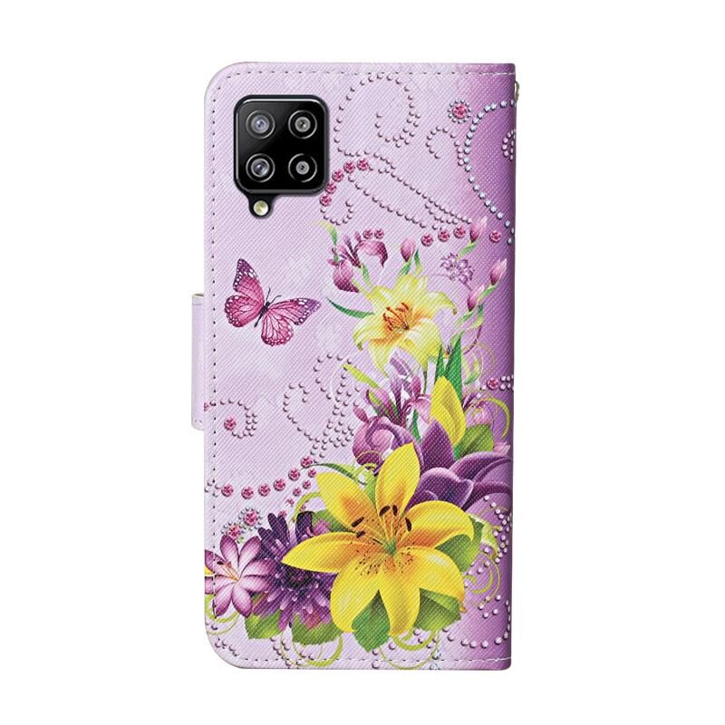 Θήκη Samsung Galaxy A12 5G Δερμάτινη με σχέδιο ζωγραφικής (Κίτρινο Πεταλούδα Λουλούδι)