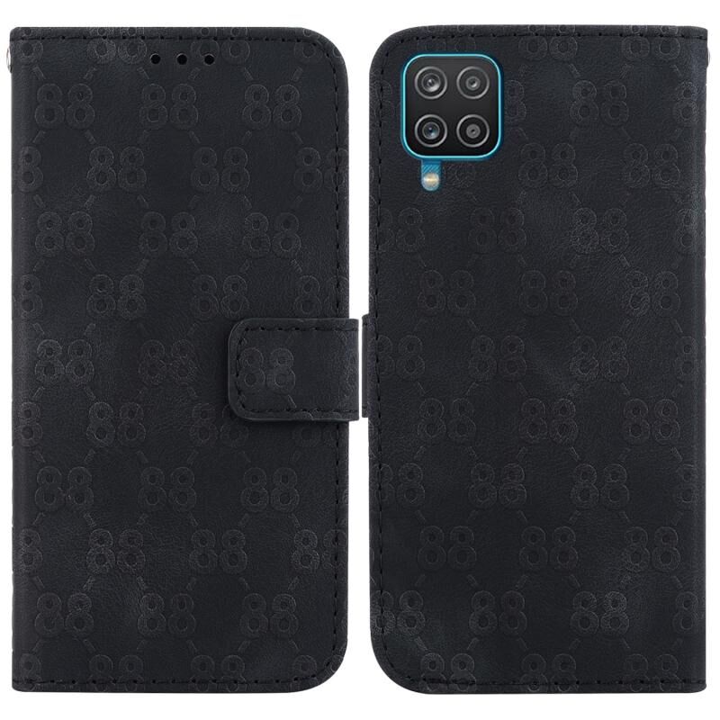 Θήκη τηλεφώνου Samsung Galaxy A12 5G Διπλή, δερμάτινη με ανάγλυφο σχέδιο σε σχήμα 8 (Μαύρο)