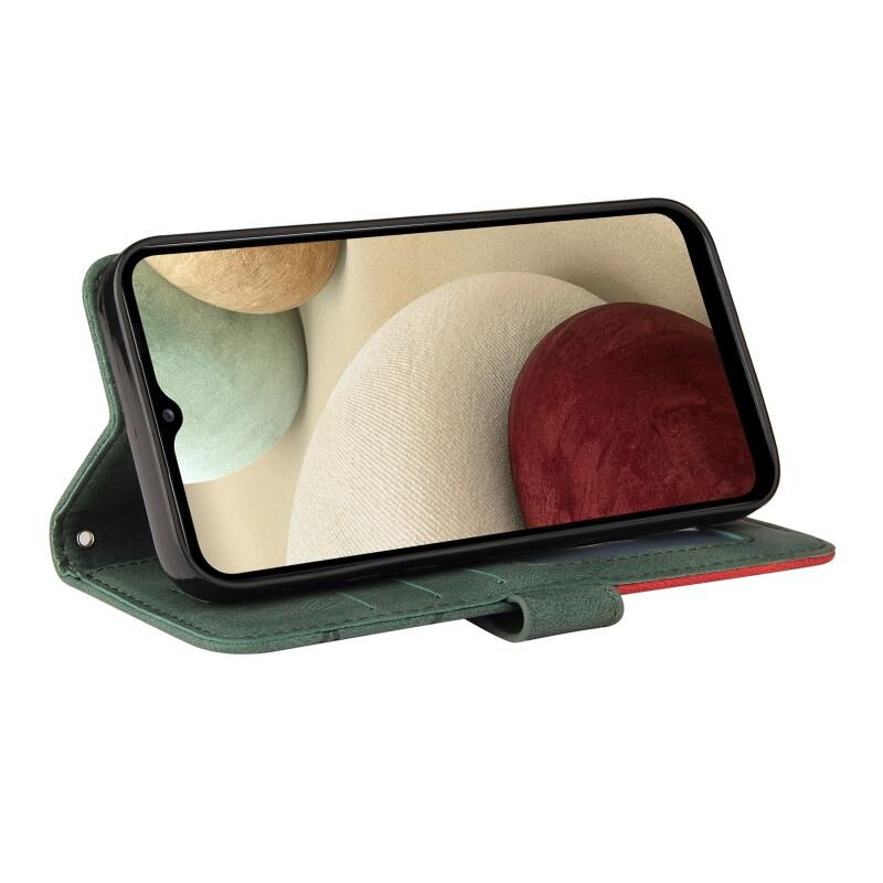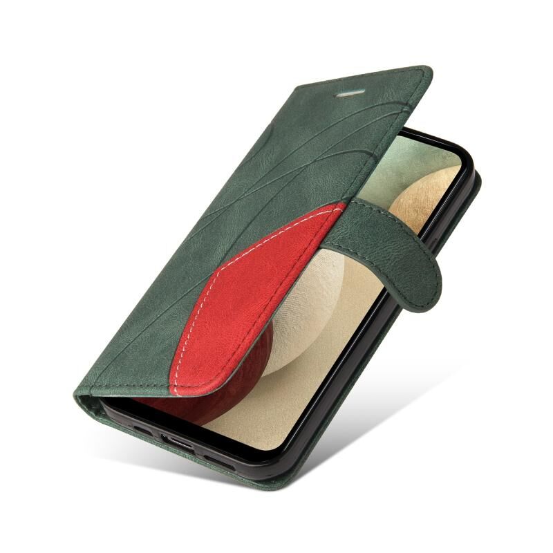 Για Samsung Galaxy A12 5G Διπλό χρώμα Splicing οριζόντια Flip PU δέρμα υπόθεση με θήκη & υποδοχές για κάρτες & πορτοφόλι (πράσινο)