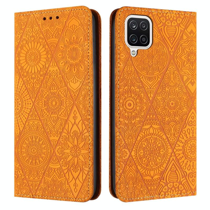 Θήκη τηλεφώνου Samsung Galaxy A12 5G από δέρμα με έθνικ ανάγλυφο και απορρόφηση (Κίτρινο)