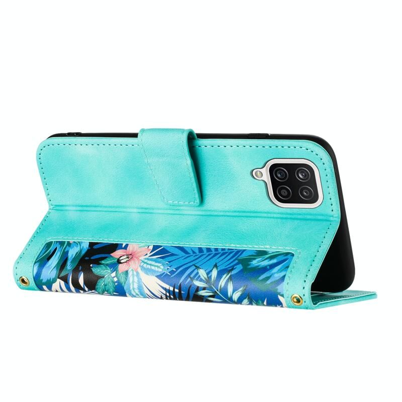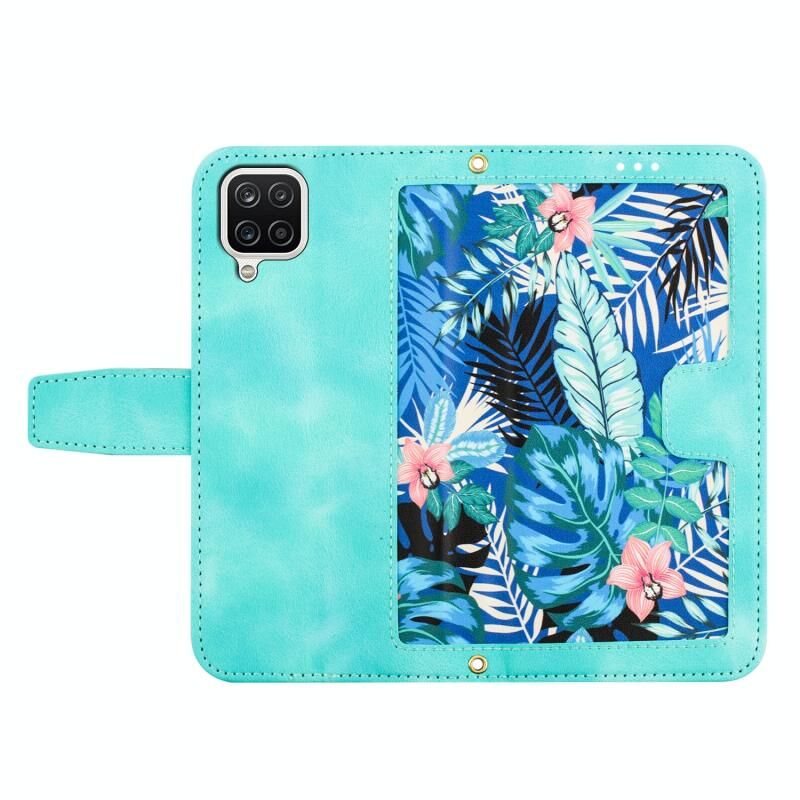 Θήκη τηλεφώνου Samsung Galaxy A12 5G από δέρμα με λουλουδάτο σχέδιο και κορδόνι (Ανοιχτό Μπλε)