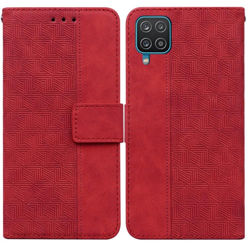 Για Samsung Galaxy A12 5G Γεωμετρική ανάγλυφη δερμάτινη θήκη τηλεφώνου (κόκκινο)