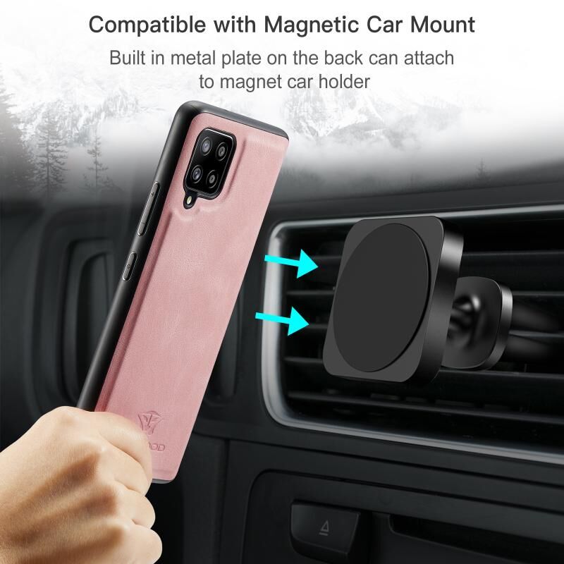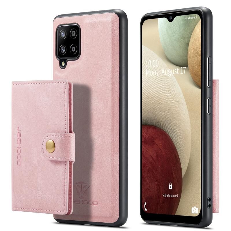 Για Samsung Galaxy A12 5G JEEHOOD Ρετρό Μαγνητική Αποσπώμενη Προστατευτική Θήκη με Πορτοφόλι & Θήκη Κάρτας & Στήριξη (Ροζ) (ρόζ)