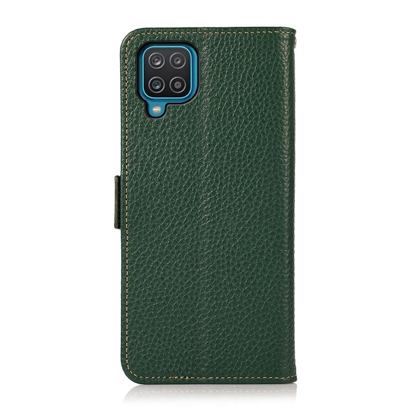For Samsung Galaxy A12 5G KHAZNEH Side-Magnetic Litchi Genuine Leather RFID Phone Case(Green)