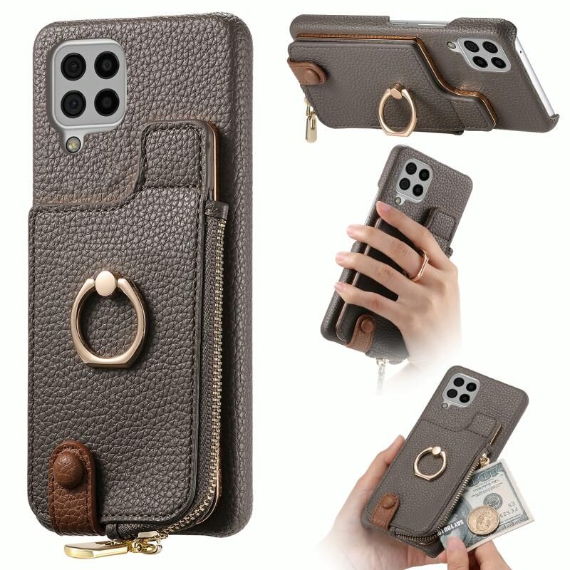Για Samsung Galaxy A12 5G Litchi δέρμα λάδι Edge δαχτυλίδι φερμουάρ πορτοφόλι πίσω υπόθεση τηλεφώνου (Γκρι)
