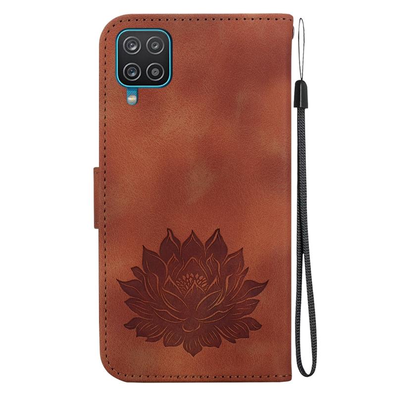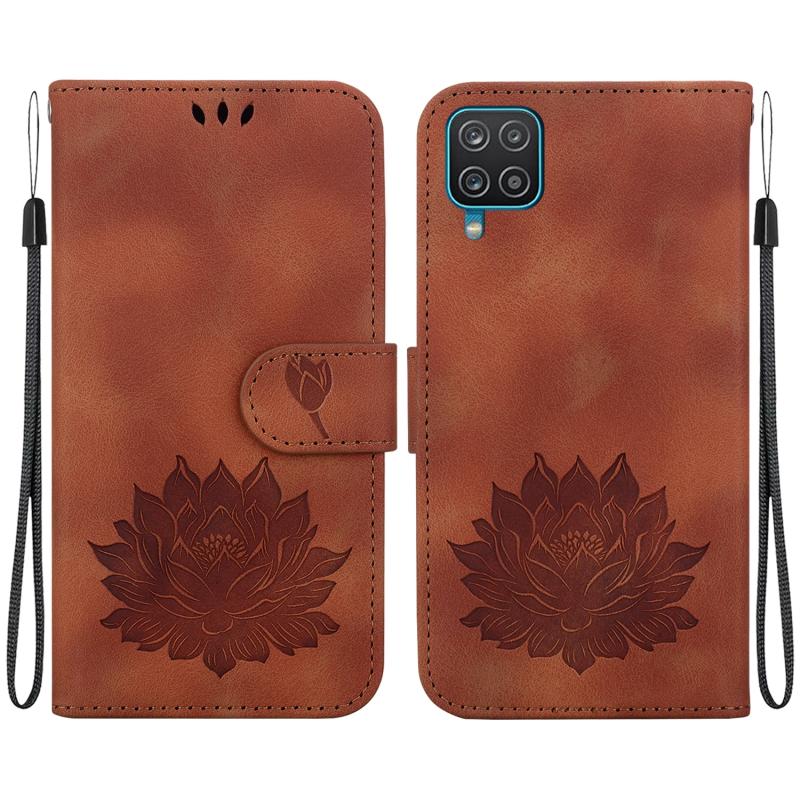 For Samsung Galaxy A12 5G Lotus Embossed Leather Phone Case(Brown)