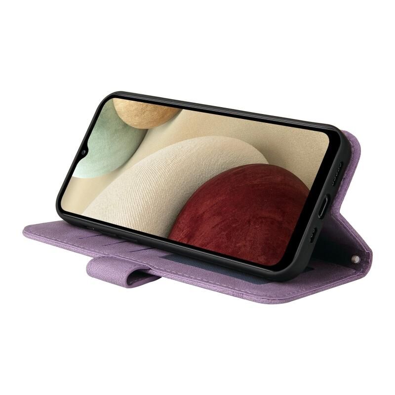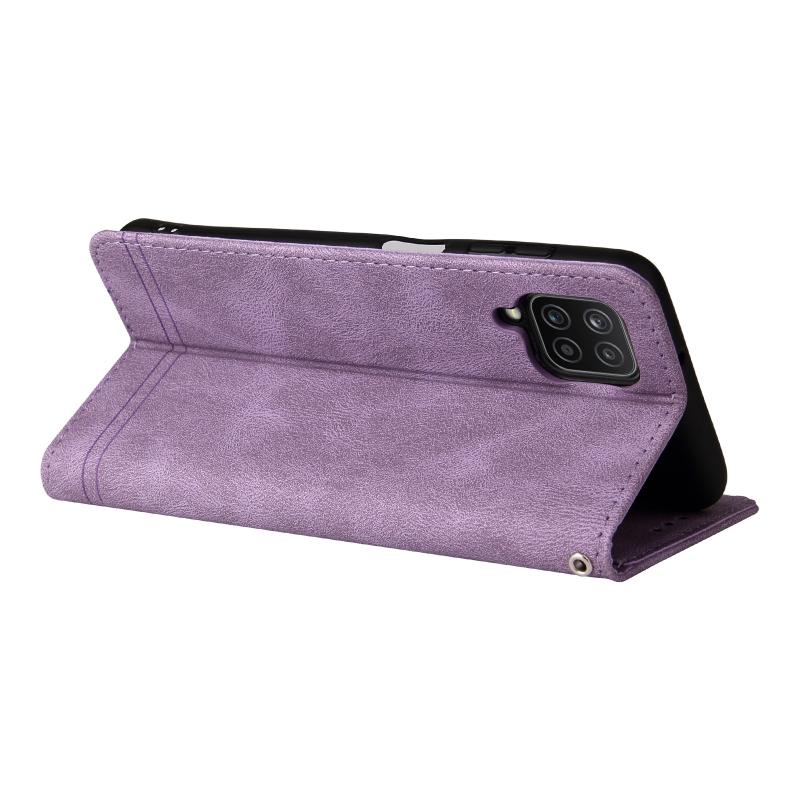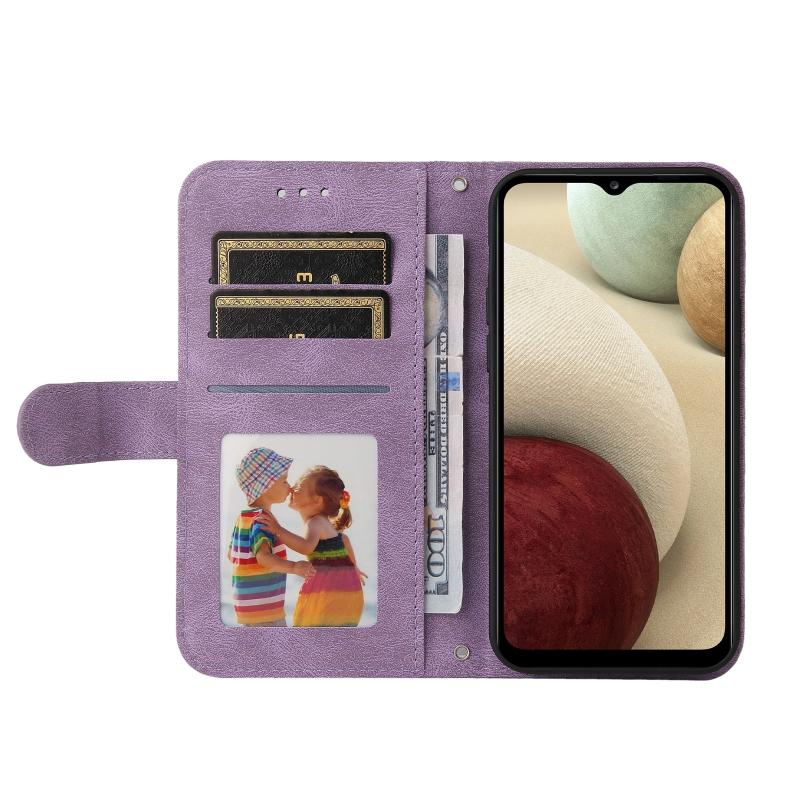 Θήκη δέρματος οριζόντιας αναδίπλωσης με αίσθηση δέρματος για Samsung Galaxy A12 5G / M12 5G / F12 5G με μεταλλικά κουμπιά, σχέδιο Δέντρο της Ζωής, με βάση, θήκη για κάρτες, πορτοφόλι, κορνίζα φωτογραφιών και λουρί (Μωβ)