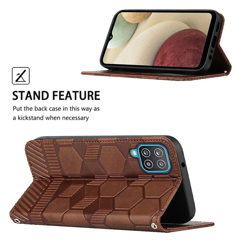 Για Samsung Galaxy A12 5G / M12 / F12 Ποδόσφαιρο υφή μαγνητική δερμάτινη θήκη Flip τηλέφωνο (Καφέ)
