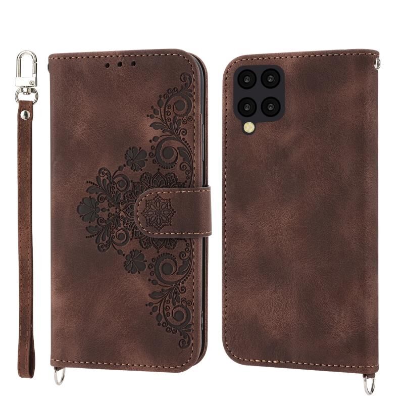 Θήκη τηλεφώνου Samsung Galaxy A12 5G/M12 από δέρμα με ανάγλυφα λουλούδια και αίσθηση δέρματος (Καφέ)