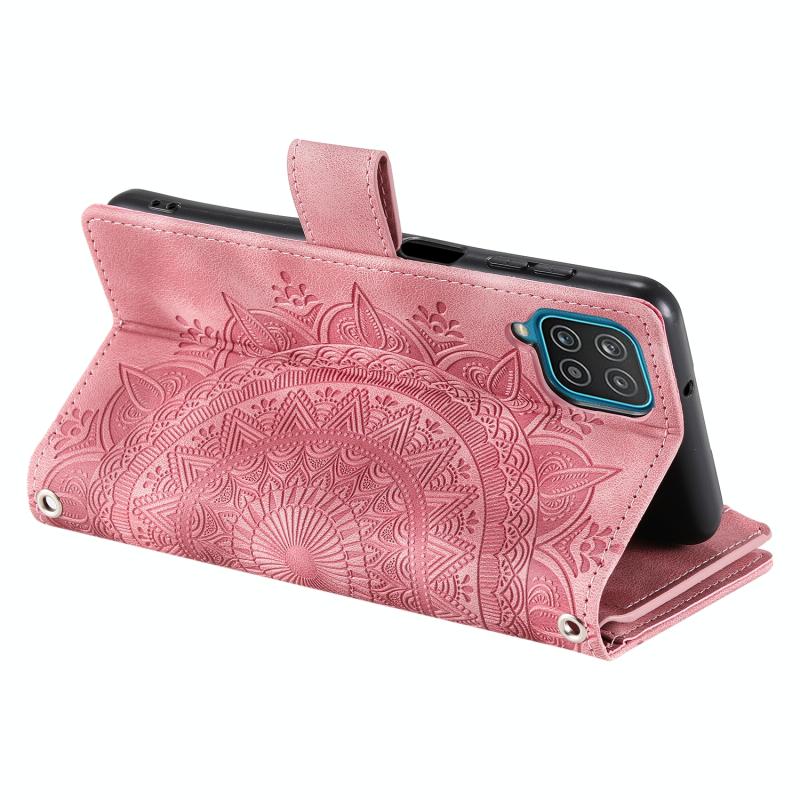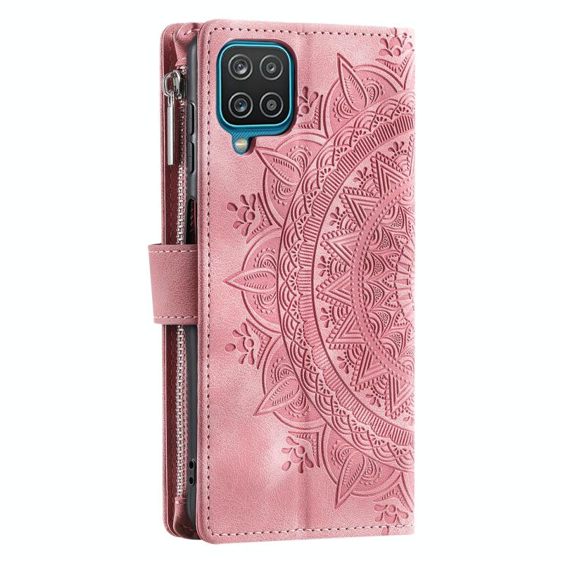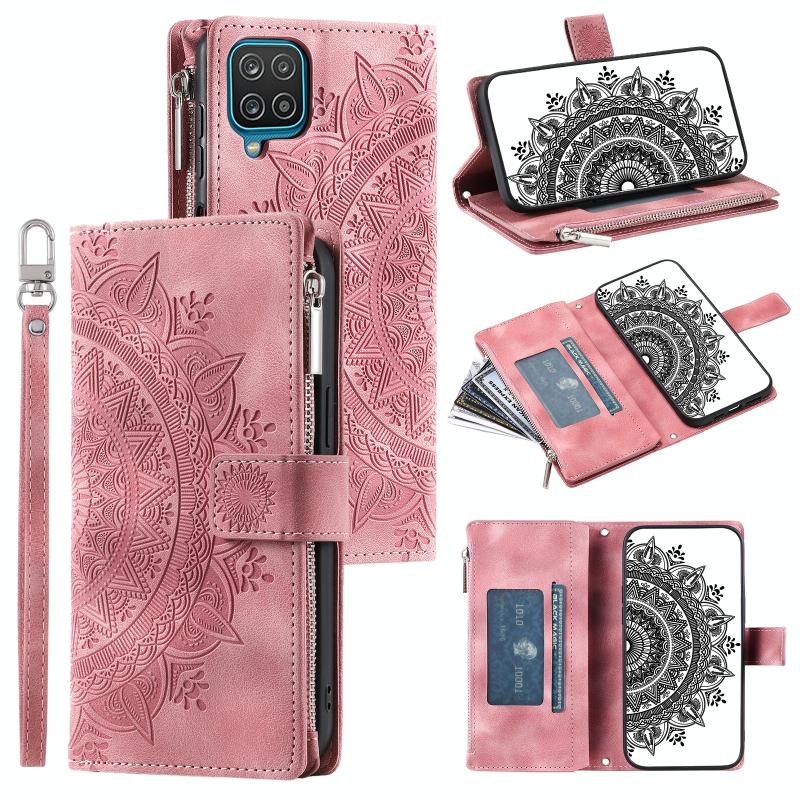 For Samsung Galaxy A12 5G Multi-Card Totem Zipper Leather Phone Case(Pink)