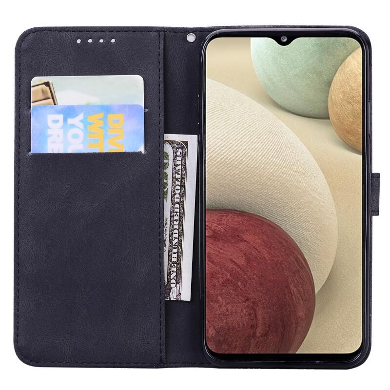 Θήκη Samsung Galaxy A12 5G από Δέρμα με Οριζόντιο Άνοιγμα, με Υφή Retro, ανάγλυφα σχέδια με Πεταλούδες, με Θήκη & Θήκες για Κάρτες & Πορτοφόλι (Καφέ)