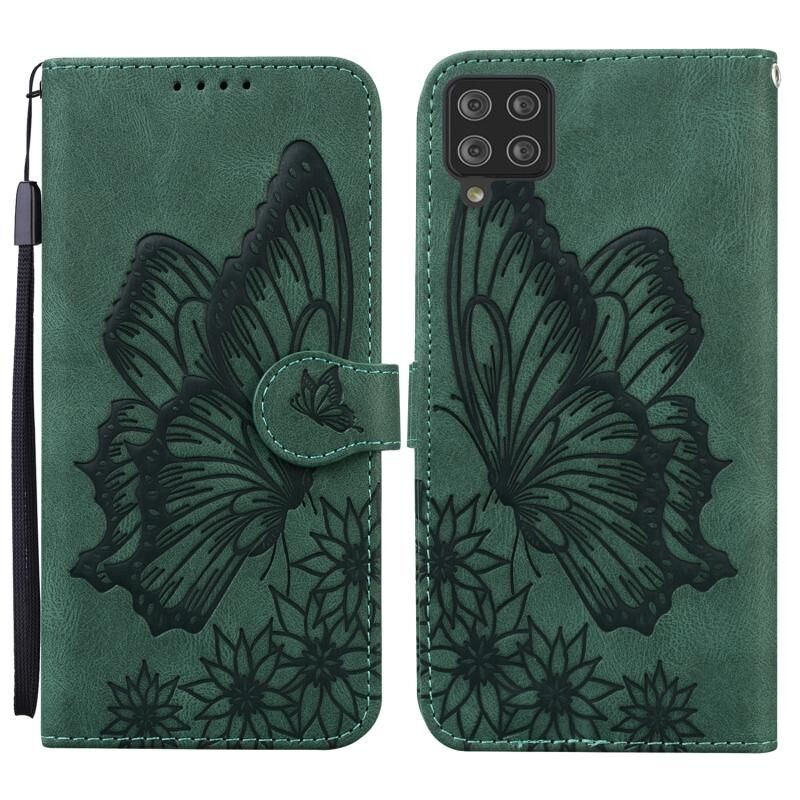 Θήκη Samsung Galaxy A12 5G από Δέρμα με Οριζόντιο Άνοιγμα, με Υφή Retro, ανάγλυφα σχέδια με Πεταλούδες, με Θήκη & Θήκες για Κάρτες & Πορτοφόλι (Καφέ)