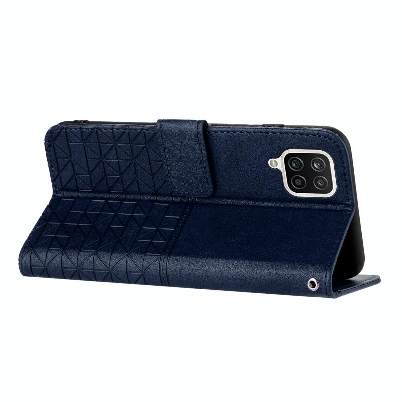 For Samsung Galaxy A12 5G Rhombic Texture Leather Phone Case with Lanyard(Blue)