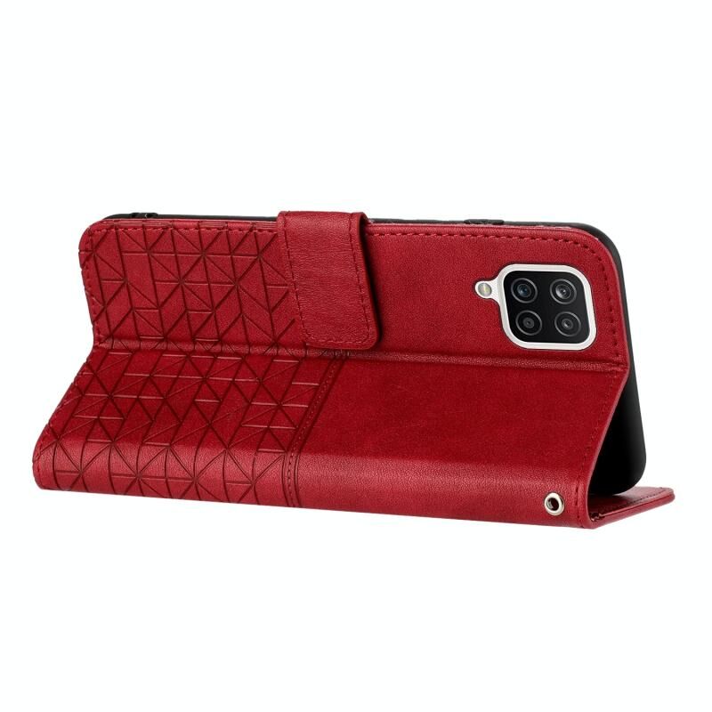 For Samsung Galaxy A12 5G Rhombic Texture Leather Phone Case with Lanyard(Red)