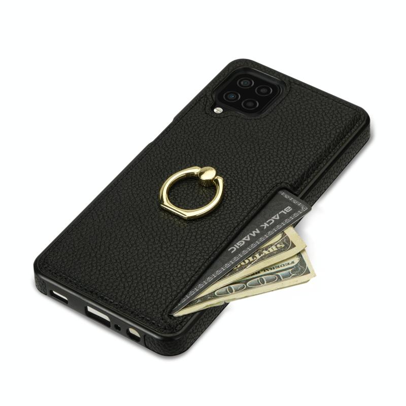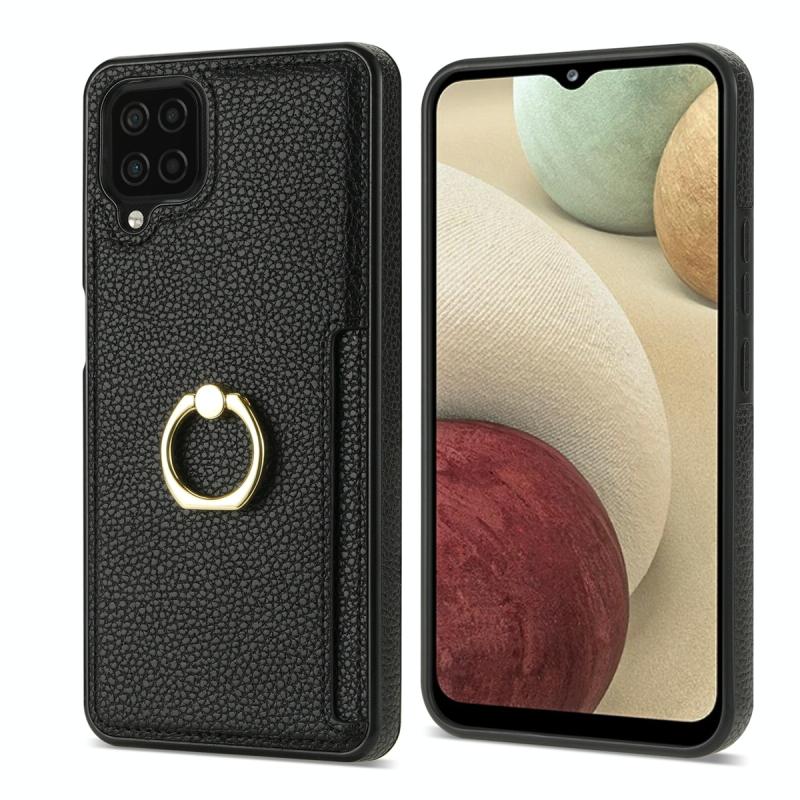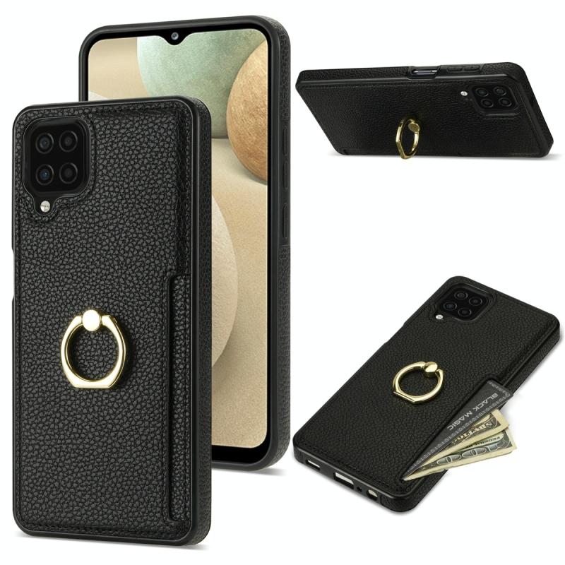 For Samsung Galaxy A12 5G Ring Card Litchi Leather Back Phone Case(Black)