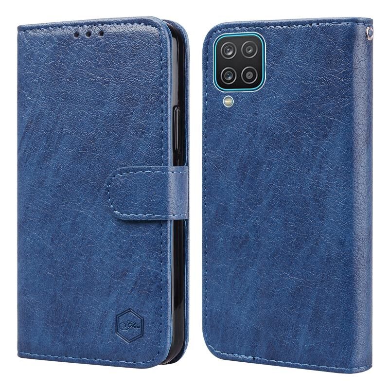 Θήκη κινητού τηλεφώνου Samsung Galaxy A12 5G με υφή δέρματος λάδι και PU + TPU (Σκούρο μπλε)