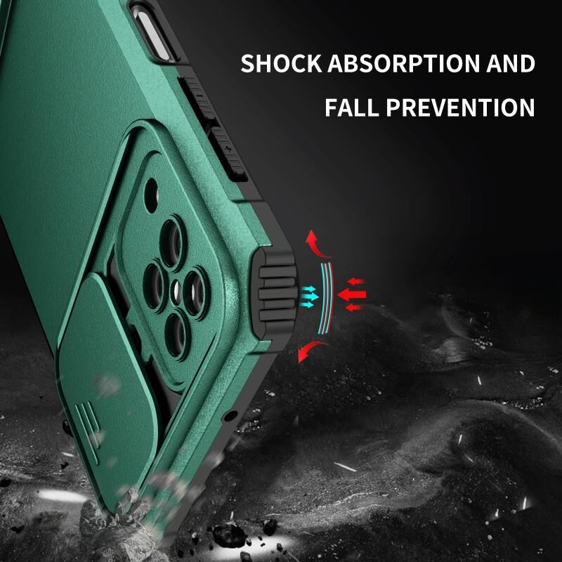 Για Samsung Galaxy A12 5G Στερεοσκοπική κάτοχος συρόμενη Camshield θήκη τηλεφώνου (Σκούρο πράσινο)