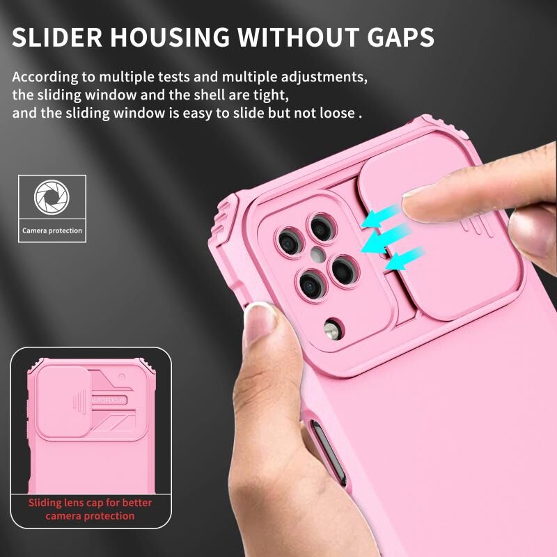 Για Samsung Galaxy A12 5G Στερεοσκοπική κάτοχος συρόμενη Camshield θήκη τηλεφώνου (ρόζ)