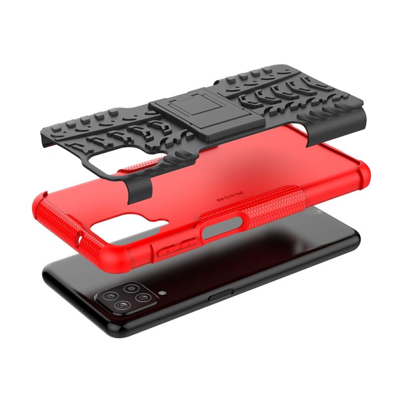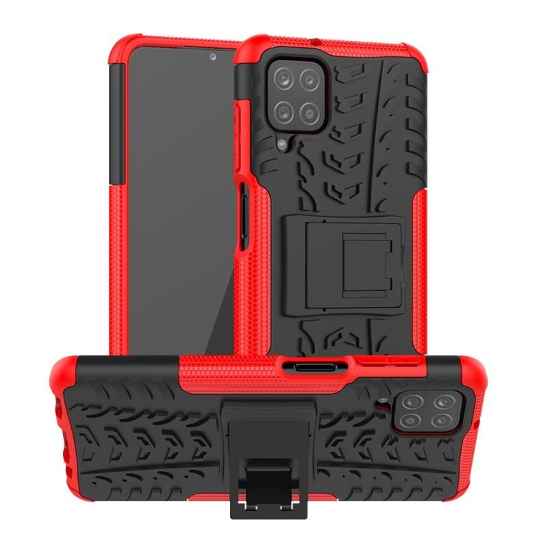 Θήκη προστασίας για Samsung Galaxy A12 5G με υφή ελαστικού, αντικραδασμική από TPU+PC με βάση στήριξης (Πράσινη)