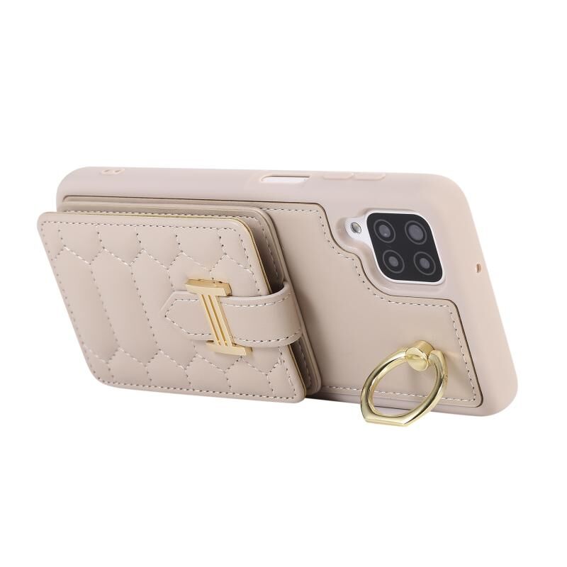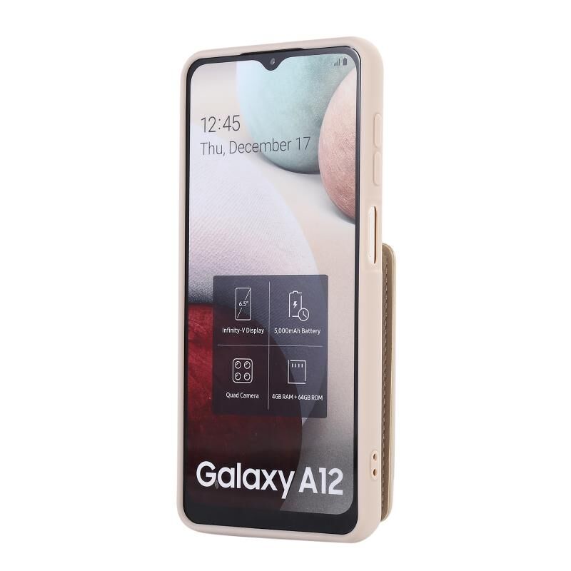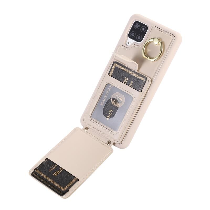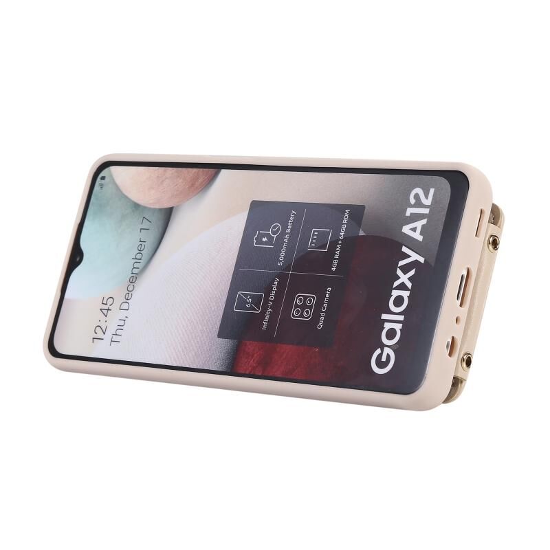 Για Samsung Galaxy A12 5G Κάθετη κάρτα τσάντα δαχτυλίδι τσάντα κάτοχος υπόθεση τηλεφώνου με διπλό κορδόνι (μπεζ)